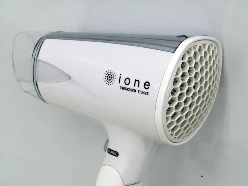 ●商品名:テスコム ヘアドライヤー イオネ マイナスイオン ●型式:TID425 ●年式:2018年製 ●カラー: ホワイトシルバー ●仕様 ・本体サイズ:幅172×高さ200×奥行き77mm,幅137×高さ200×奥行き77mm(本体のみ) ・本体重量:375g(本体のみ),385g(フード付き) ・コード長さ:1.6m ・風量:1.5m3/分 ・風温切替:DRY-SET-COOL-OFF ・温風温度:115℃(周囲温度 30℃の場合。